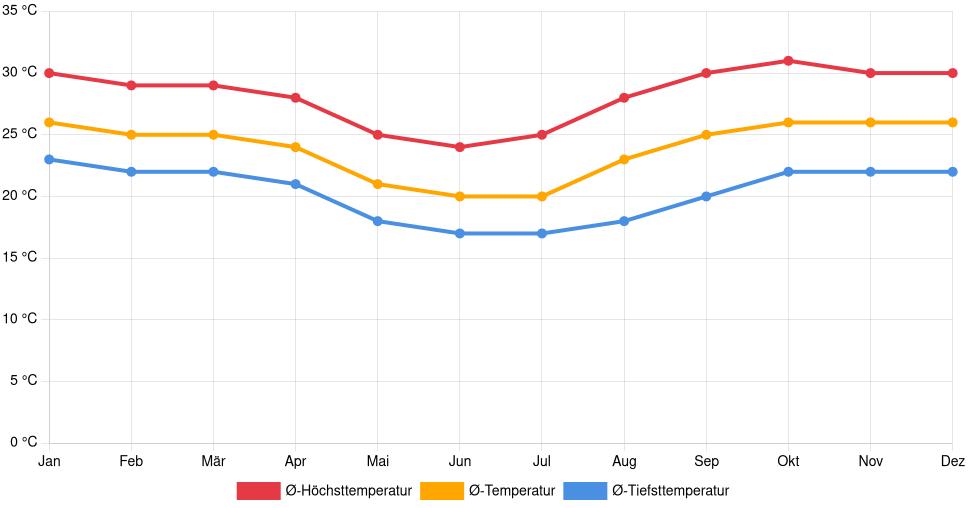 | Ø‑Höchsttemperatur | 30 °C | 29 °C | 29 °C | 28 °C | 25 °C | 24 °C | 25 °C | 28 °C | 30 °C | 31 °C | 30 °C | 30 °C |