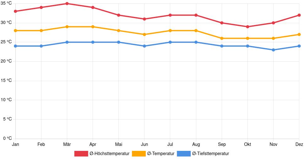 | Ø‑Temperatur | 28 °C | 28 °C | 29 °C | 29 °C | 28 °C | 27 °C | 28 °C | 28 °C | 26 °C | 26 °C | 26 °C | 27 °C |